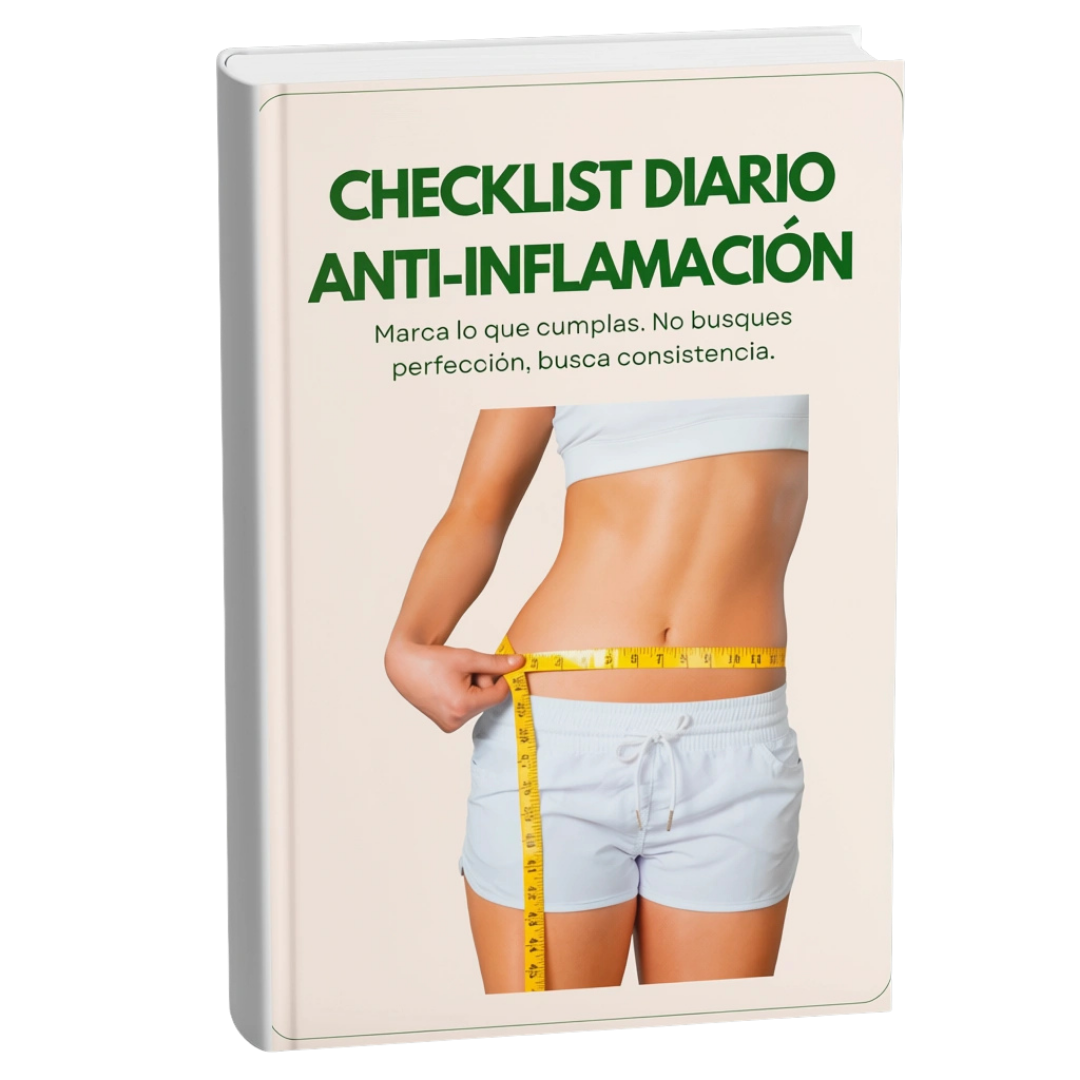 Este checklist fue creado para ayudarte a pasar del conocimiento a la acción, sin presión ni perfeccionismo. Con esta herramienta aprenderás a guiar tu día a día, marcar lo que cumples y construir hábitos que realmente ayudan a desinflamar tu cuerpo, recuperar ligereza y sentirte mejor contigo misma.
